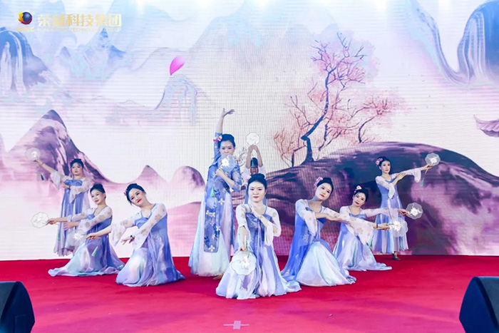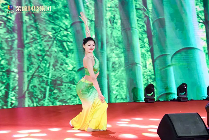 一場充滿未來感和創意的人屏互動視覺秀——《舞動青春》,讓大家體驗了科技與藝術的融合;一曲悠揚的《西樓別序》,伴隨著婀娜多姿的舞姿,帶領大家穿越千古江山,感受源遠流長的中華文化底蘊;簡短而富有內涵的《三句半》,贊揚了集團各部門的辛勤付出和無私奉獻;手語舞蹈《》,于無聲中用雙手訴說對祖國的依戀和感激。