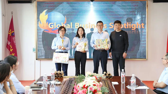 比賽中途,董事長楚科奇親自蒞臨現場觀摩,他高度贊揚了選手們的精彩表現,并提出了寶貴建議。楚總表示:"語言能力是國際化人才的素養,今天的比賽讓我看到了年輕一代榮盛人的全球視野和功底,希望大家繼續保持這份學習熱情,將語言優勢轉化為業務優勢,在開拓國際市場時既能精準傳遞產品價值,又能展現中國企業形象,真正成為連接中國制造與全球市場的橋梁。"