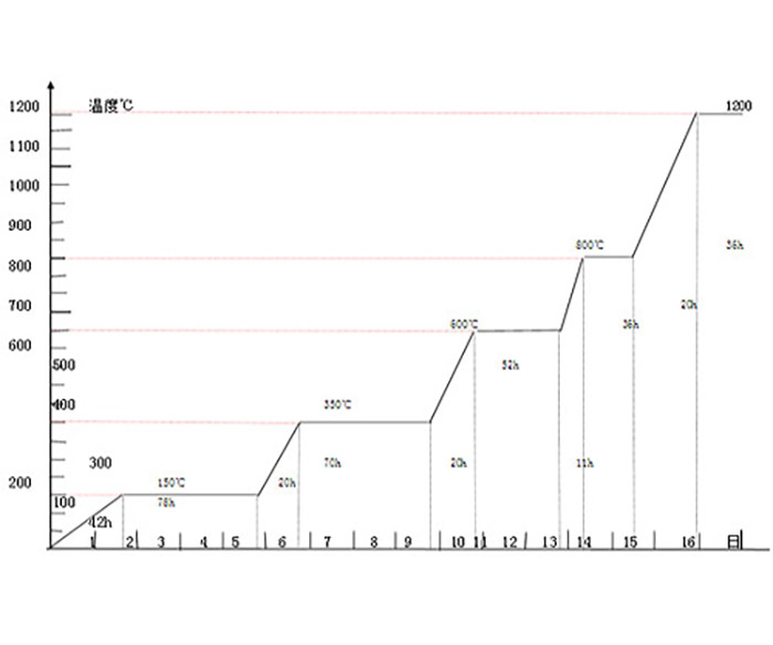 烘爐要根據耐火材料的性能和施工季節,制訂烘爐曲線。烘爐曲線應以溫度為縱坐標,時問為橫坐標,其主要內容有:烘爐期限、升溫速度、恒溫時間、上限溫度、更換加熱系統的溫度。烘爐后需降溫的爐子。在烘爐曲線中應注明降溫速度。既有耐火磚又有不定形耐火材料耐火材料的爐子,應根據其耐火材料的材質特點、主次關系制訂烘爐曲線。煙囪和煙道要先烘。采用耐火澆注料、可塑料、搗打料或噴涂料作為耐火材料的爐子,其烘爐曲線應根據耐火材料的材質及其厚度、成型工藝和烘烤方式制訂。